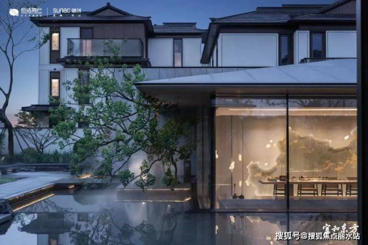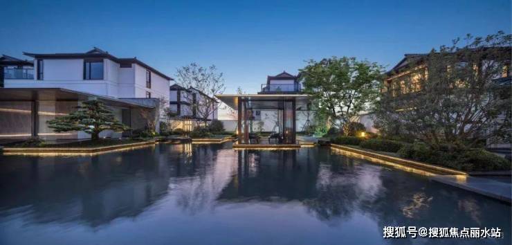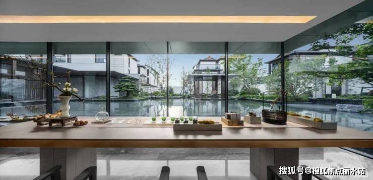 闲庭回廊后,悠然见碧湖。低密住区中罕见的双中心水院,与品莹剔透的现代玻璃建筑相映相融,临水观照,品茗舒体,逸趣自生