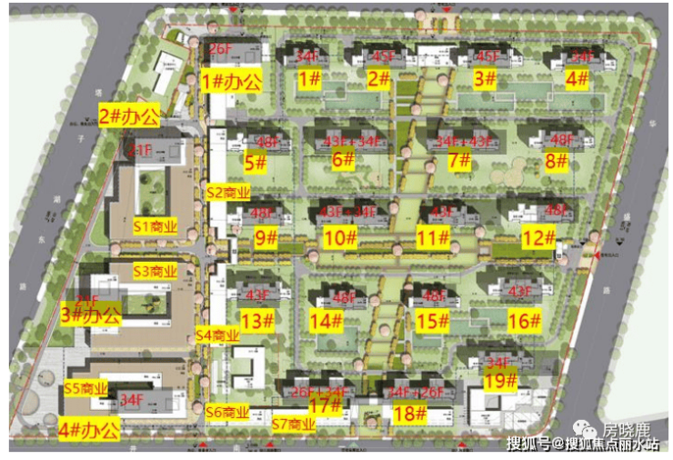 项目占地面积约17万方,总建筑面积约91.7万方,容积率约3.99,绿化率约25%,共包含了19栋楼,包含4211套房源,5044个车位,车位配比约1:1.2。项目自带约17万方商业综合体、两所幼儿园(9班制和12班制)。