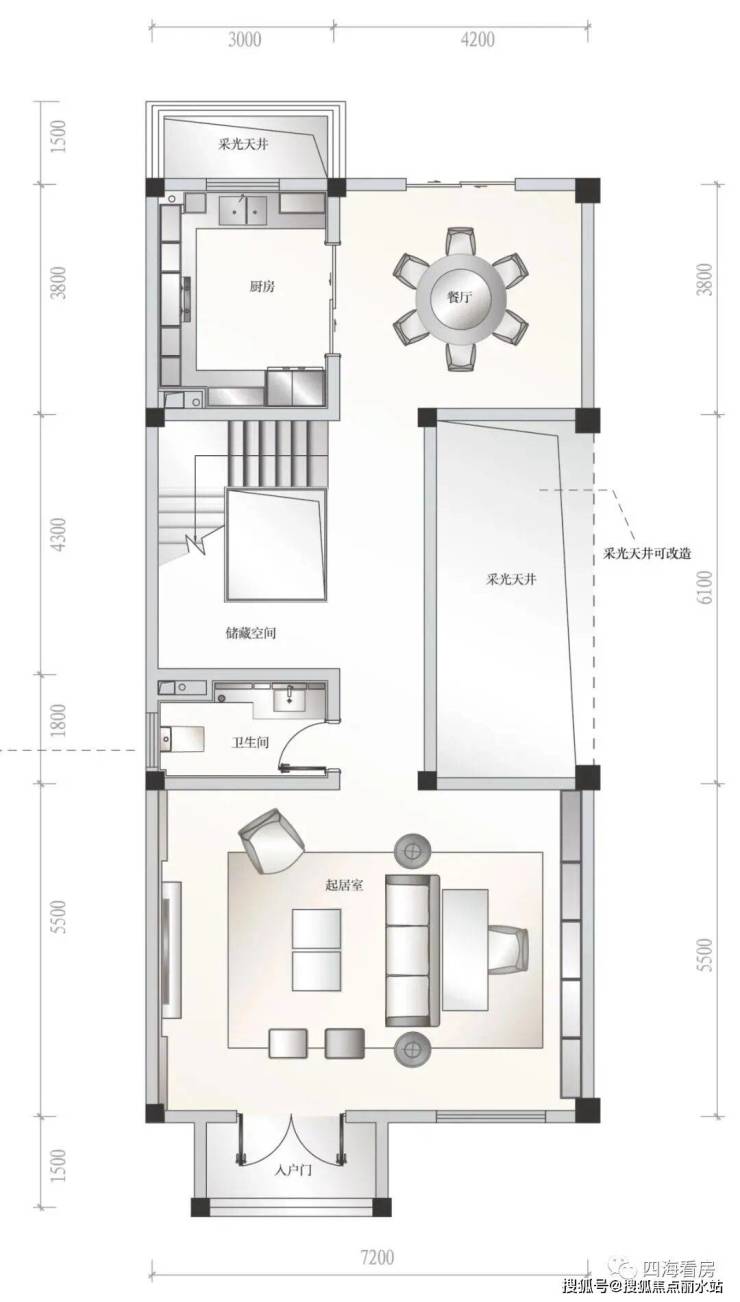 9.情境天井:将生活场景演绎到极致,一楼餐厅、二楼挑空、三楼阳光房,更多功能,自由想象。
