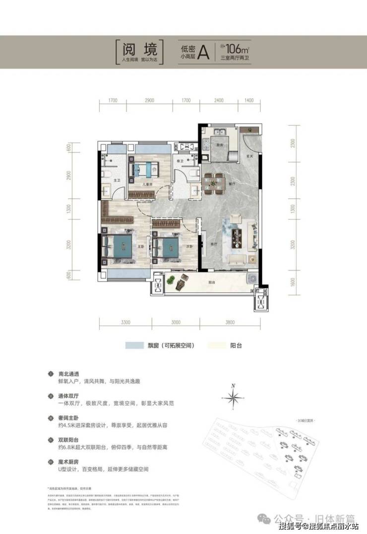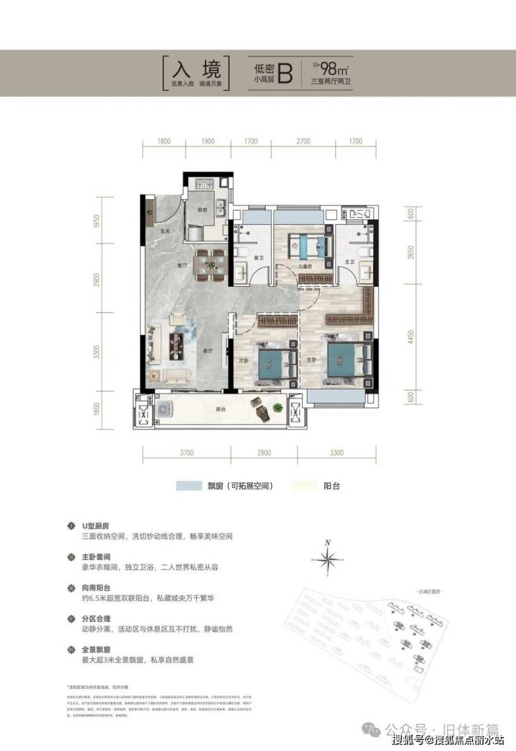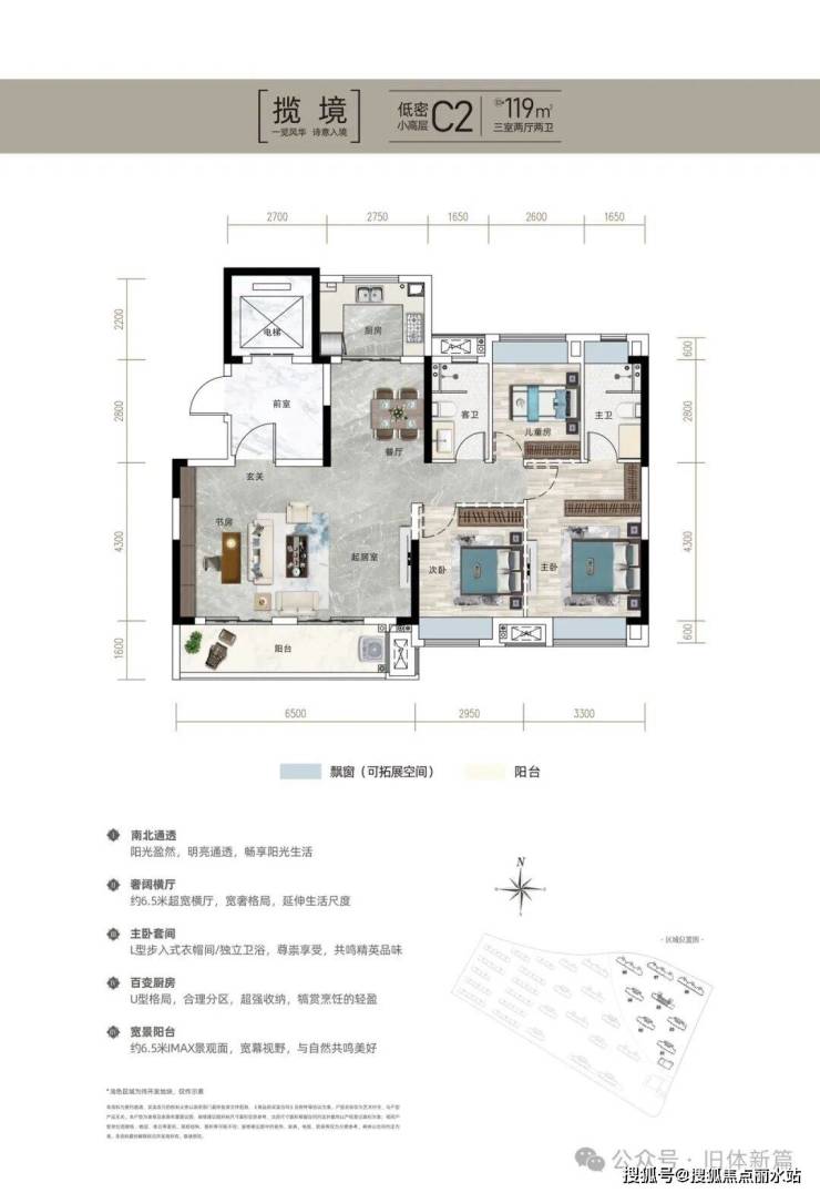 以领先市场的创新约89㎡藏品洋房、公摊低至17%,赠送面积得房率约92%;约98㎡—119㎡南北通透、电梯入户小高层产品,小高层打造区域内罕见2T2梯户比,专梯入户,保证私密度与尊崇感。采用南北通透户型设计,充分保证采光,以超高得房率的超前智造空间,领跑全区,敬献全城菁英。
