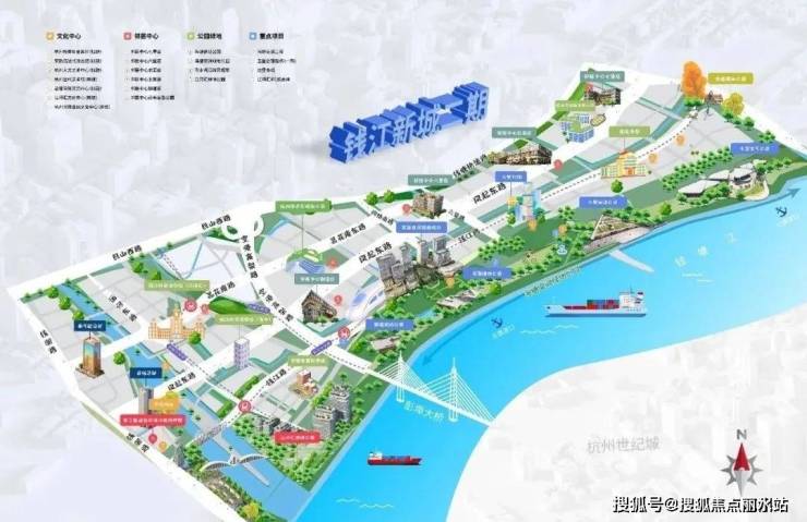 钱二有着拥江发展主战场、未来总部湾、滨水新潮岸、世界级滨水区等大头衔。