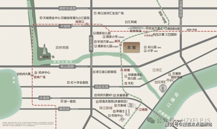 项目与地铁4号线新风站距离极近,仅约50米 ,从这里出发1站即可直达杭州东站。而杭州东站作为三网合一(高铁 / 地铁 / 机场快线)的枢纽,赋予了翠隐江粼轩强大的交通能级。