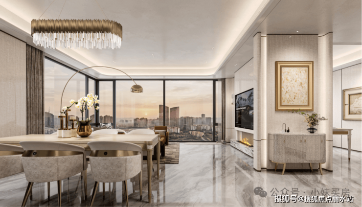 约63㎡9x7米270°全景厅:今年武昌滨江单价4.5-5.5万/㎡顶豪,建面约230㎡客厅面宽约9.2米,项目建面约168㎡即可拥有同级尺度;