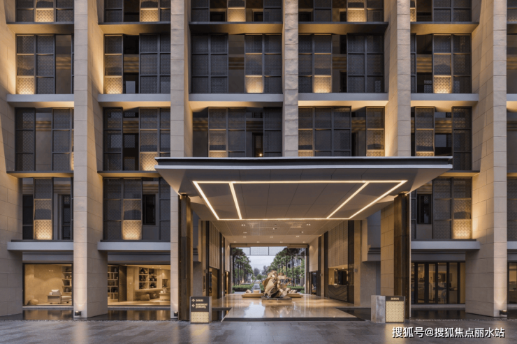 归家系统的营造方面,将传统的“起承转合”造园理念融入公共空间,一条动线穿起五重归家礼序:景观入口——归家会馆——风雨连廊——接待大堂——景观地库双大堂。每一步,都是对人居关怀的深刻解读;每一寸细节的打磨,每一重礼序的雕琢,都为营造诗意、极致、静谧的现代东方美学生活意境。