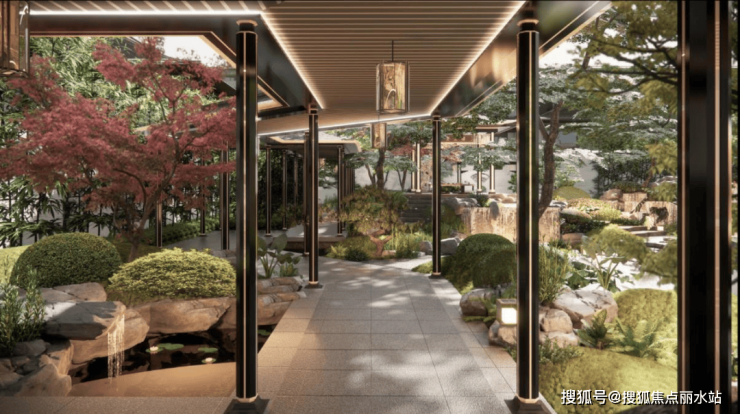 园林通过匠心营造,将游览动线化为一场诗意的漫步。样板庭院中,通过不同设计,展现“半亭掩映”“山水画墙”等细节,让居者在方寸间感受“园中筑景”的巧思。