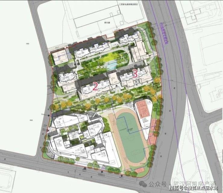 2、3号楼南侧紧邻规划的九年制学校,对视野采光影响很小,且楼下就是学校,还能实现真正的目送式教育;南侧的高线公园、北侧的小区中央景观,都让2、3号楼的视野景观极好。