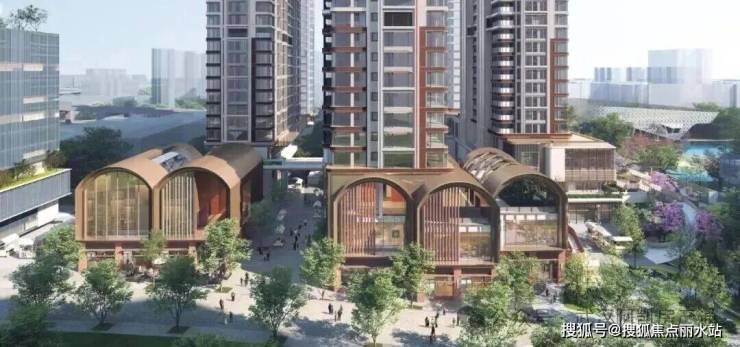 比如,沿着整个项目的十字中轴线,布局了非标商业街区和市集。与传统的社区商业不同,该项目商业类似于住宅的底盘,不仅抬高了住宅的视野和采光,还能真正实现配套就在正楼下的生活方式。