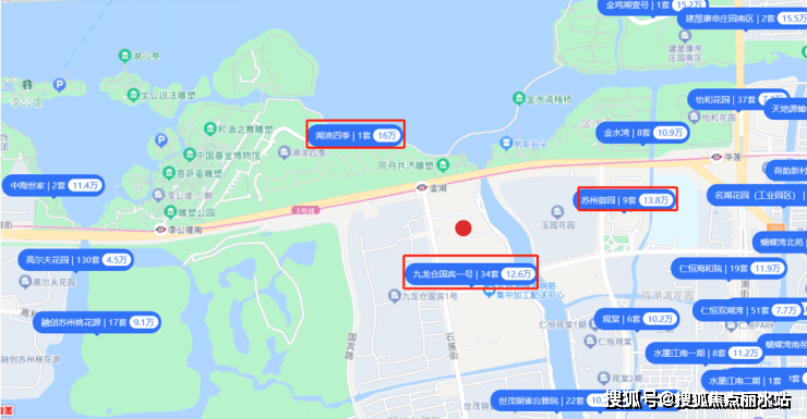 绿城玫瑰园所在双湖板块作为苏州老牌富人别墅区,旁边二手房最高16万+/㎡。