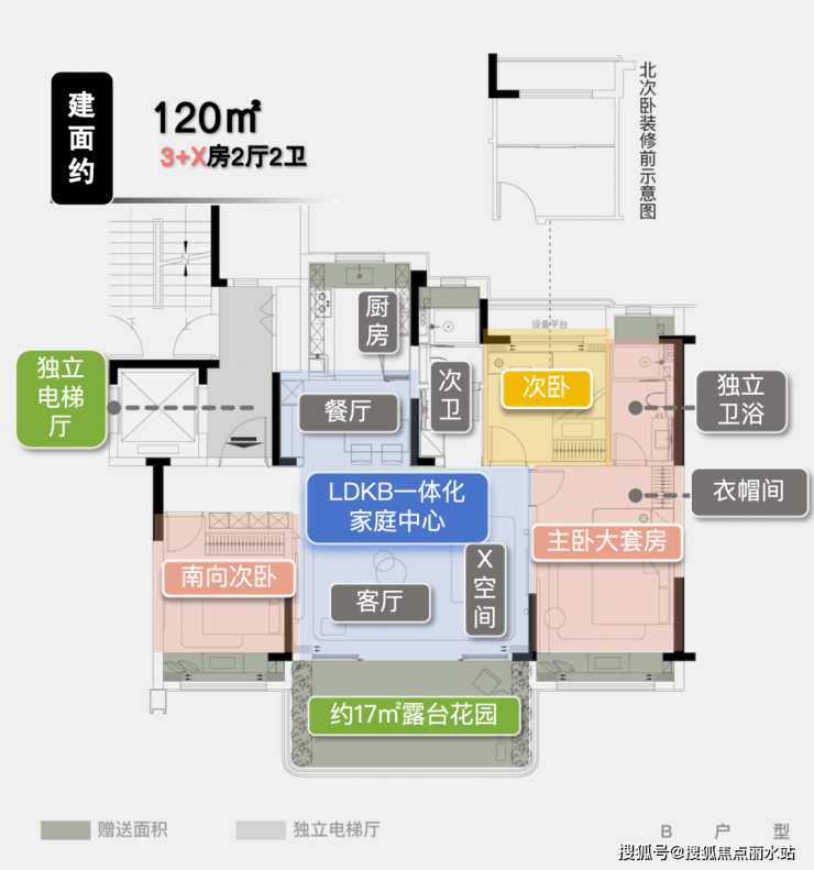| 项目约120㎡B户型,仅供参考,非交付标准
