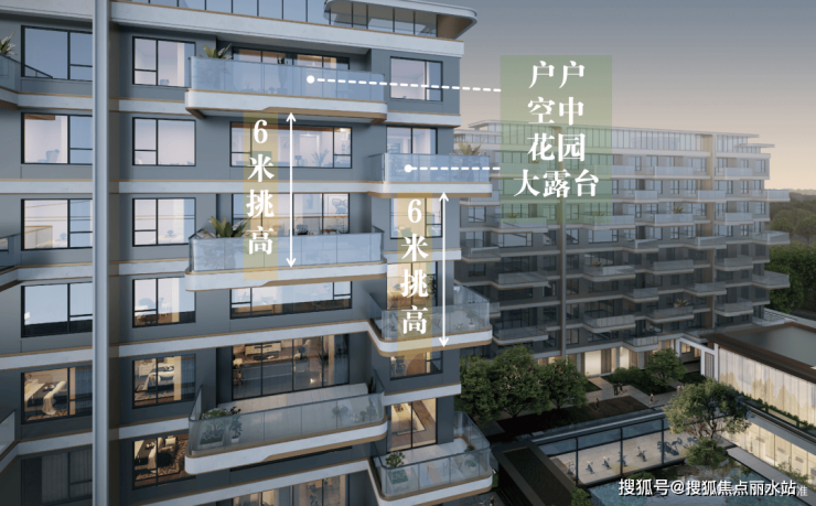 ①挑高约6m,户户独享奢阔空中花园,享受低密墅级生活