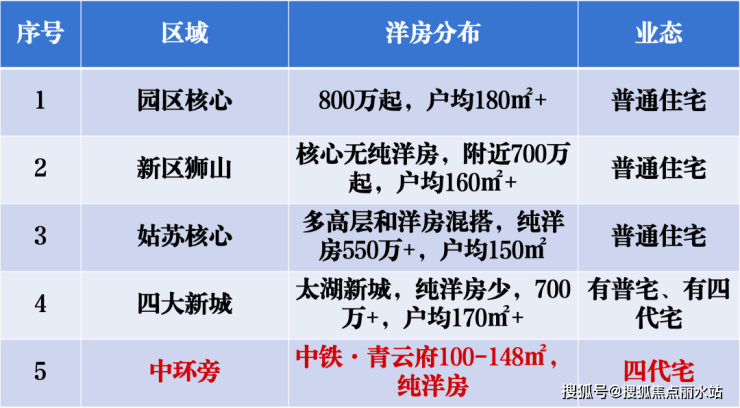苏州真核心真低密的门槛,户均在160/180㎡以上,近千万级就是主流,成本早已高不可攀,除了中铁·青云府,其他的还多是普通的住宅项目,也就是上一代的产品系。
