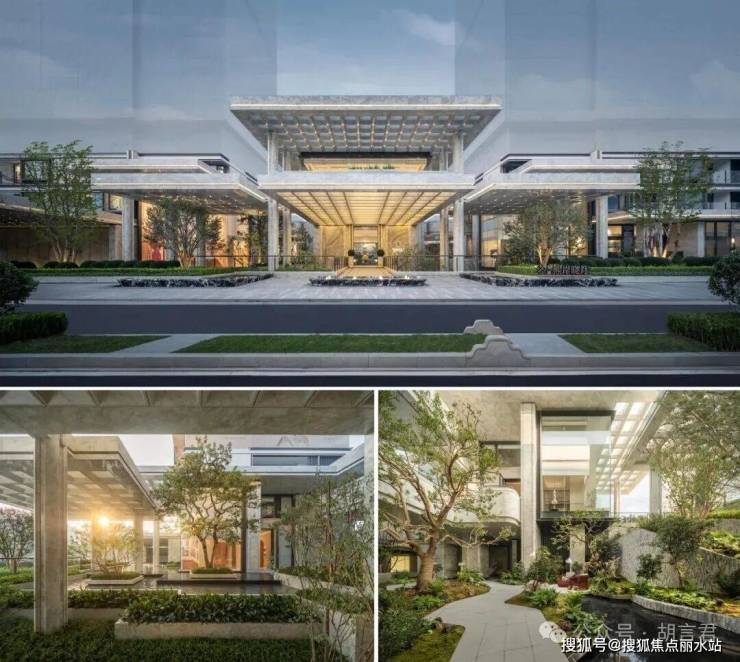 首先是为板块打造了一个地标级的主入口,进门是90米大尺度的城市生息门庭,高约6米,门庭之上还有一层城市客厅,创新性的做了屋面悬浮水景。而走近看,下面还有一层高度超过5米的下沉庭院,利用高差做了许多跌水、坡地、垂直绿化。整个立体空间高差超过15米,这是汲取了国际著名建筑设计大师“波特曼”立体中庭的设计灵感。