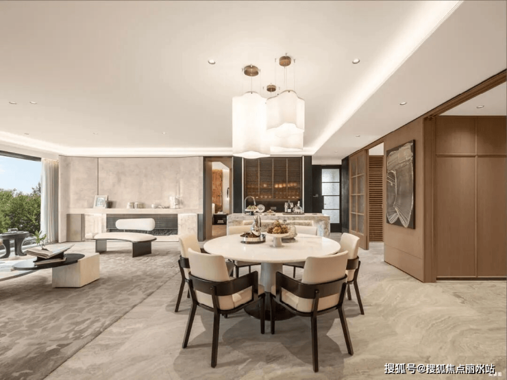 归家礼序亦是项目一大亮点。采用中轴定制归家礼序,高约8.5米、宽约42米的巨幕门庭,左右两侧8面巨幅的翠白玉壁屏风,通过酒店式大堂、森系庭院等形成五重归家流线,塑造无界的社区归家生活