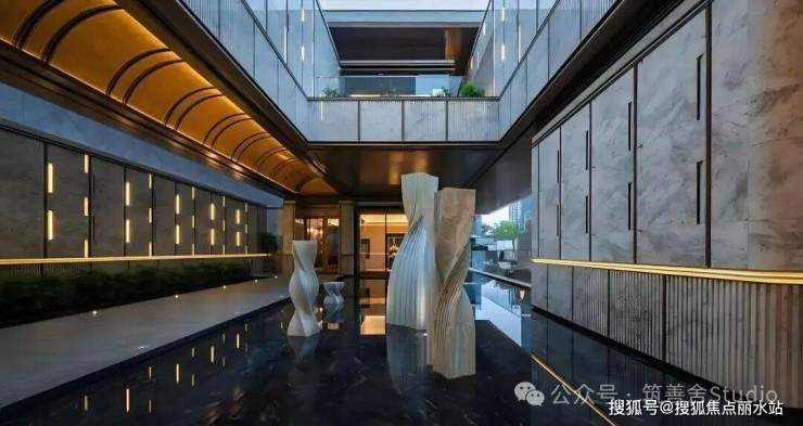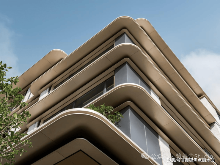 外立面美学建筑,打破了传统立面单调、静止的设计范式,通过多层次的弧形曲面,营造出一种动态生长、与环境及光线共舞的灵动形态。其未来感与生命力的视觉呈现,彰显了建筑设计的前沿潮流与未来方向。同时,金属铝板、石材与玻璃等材质的精妙搭配,点、线、面的和谐统一,共同塑造出兼具视觉冲击力与触感温度的外立面美学。