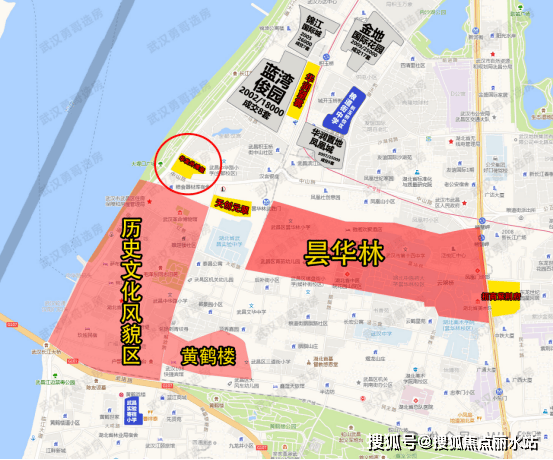 ·武昌内环滨江压轴地块:项目位于武昌区临江大道与中山路交汇处,紧邻长江大桥、黄鹤楼,距长江仅约30米,属于长江主轴“钻石地段”,是武昌内环一线滨江罕见的纯新盘。
