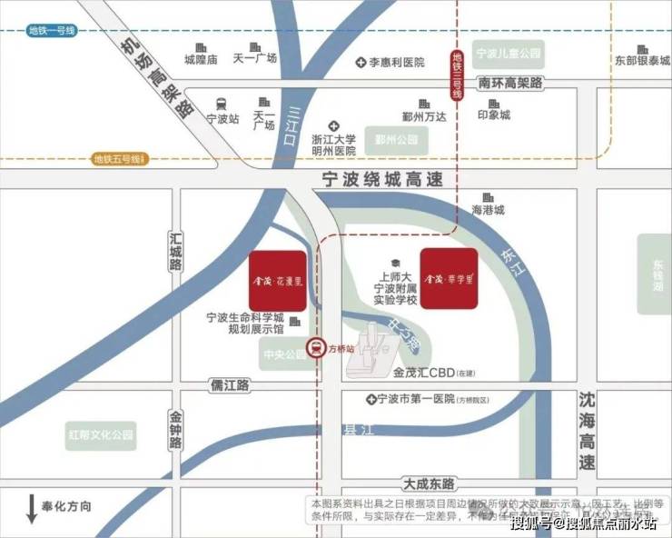 (1)直线约700米至地铁3号线方桥站,8站到南商,10站到万达,实现宁波市区半小时通勤圈;