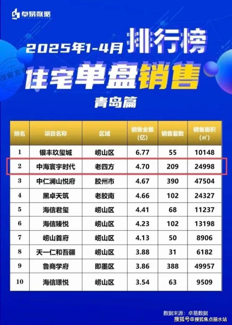 据卓易数据统计,青岛市住宅单盘1-4月销售数据中,中海寰宇时代·雲境在一片崂山豪宅里杀出重围,凭借209套的傲人成绩,冲进2025年1-4月新建商品住宅销售金额第二,荣膺1-4月市北新盘销售金额首位。
