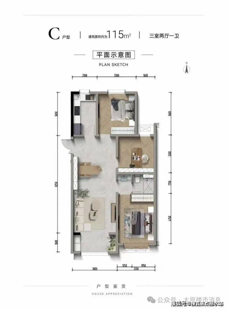 户型:115三居一卫,125三居两卫,160四居两卫,两梯四户。