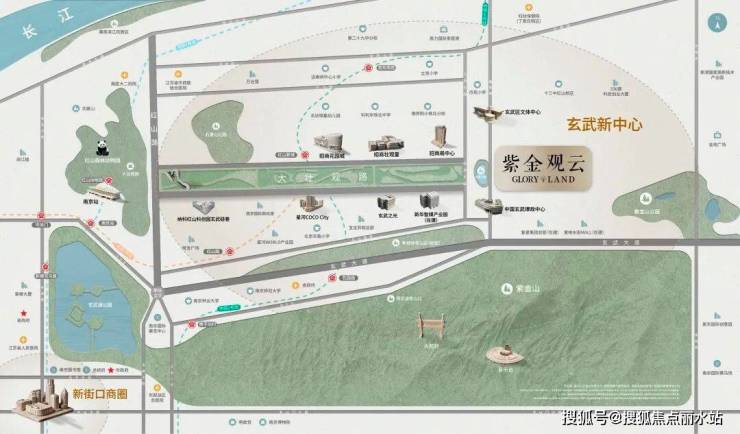 更不用说,紫金观云坐落于大壮观路连接紫金山的原点,这条路全长1600米,是新玄武的价值中轴与门庭,几乎串起了新玄武最核心的资源: