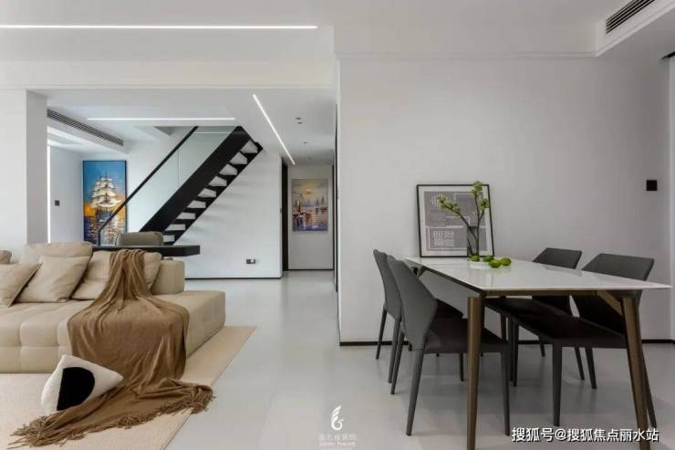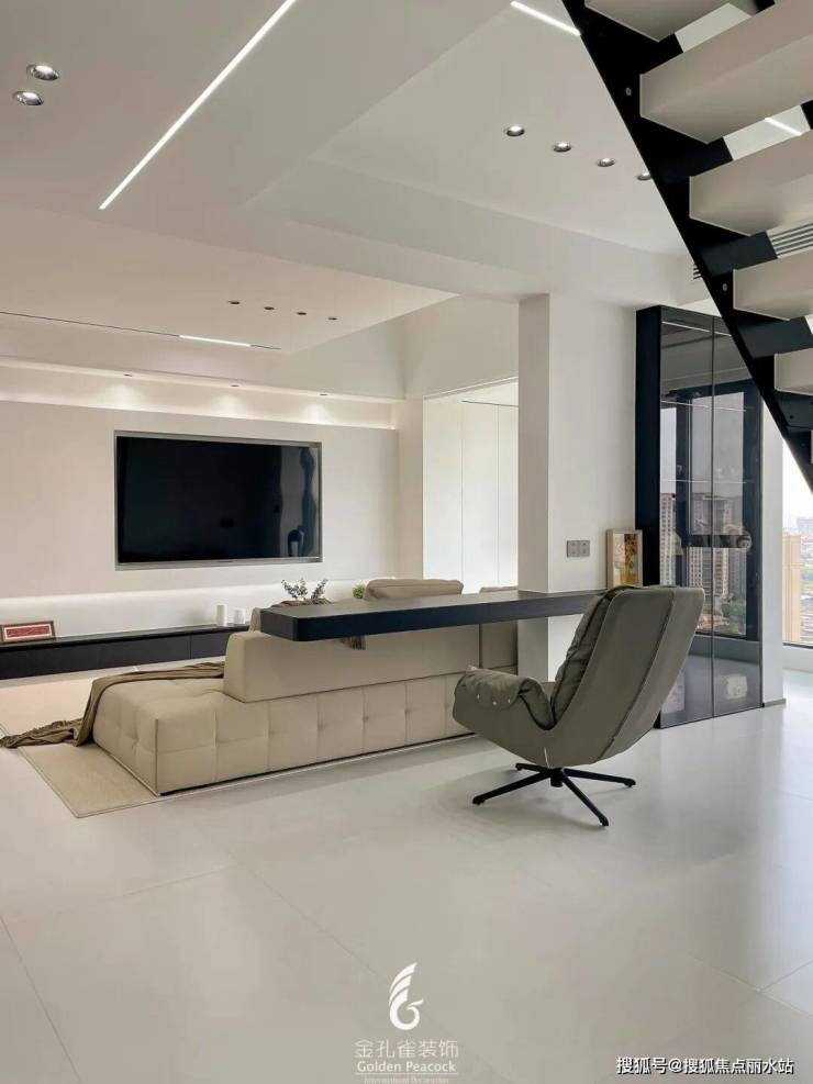空间的流动性也是亮点,开放式的布局让视线如溪流般穿梭,从客厅到楼梯区再到餐厅,无界的衔接让空间呼吸顺畅。每一处细节都在诠释 “少即是多” 的哲学,如同一位内敛的智者,用最简洁的语汇诉说最深刻的美学 —— 去除冗余,留存本质,让空间在纯净中生长出丰盈的气质。