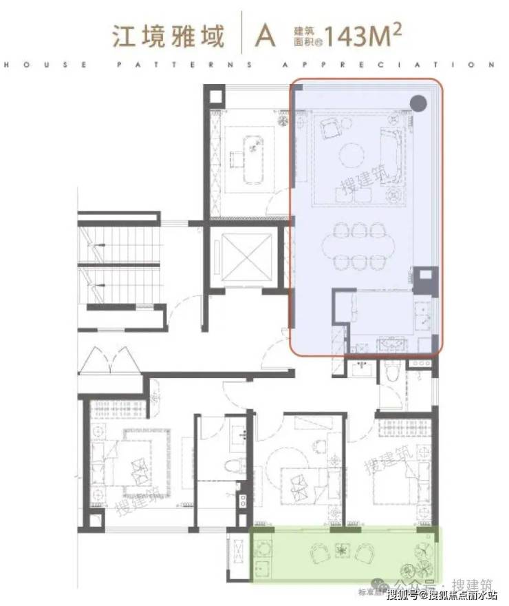 大家·坤和·龙湖云创未来社区,建面约143㎡户型,南向开间达到14米,约20㎡的阳台空间,也能大大拓展室内的活动场景。