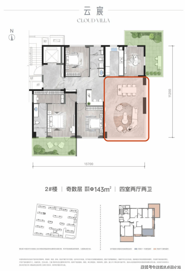 🌈温馨提示:拨打400电话,听到嘀声后,输入分机号8999即可!该项目建面约143㎡户型(偶奇数层户型有一定差异),四室两厅两卫,约14.6米奢阔面宽营造IMAX级宽幕视野。纯南约6米挑空空中庭院,270°瞰景,让家中宛如拥有两座“空中花园”,LDKG一体化设计,形成充足多样化的功能区,客厅、餐厅、阳台、书房(灵动空间)、空间几乎零浪费。这是建面约180㎡以上户型才拥有的奢享意境。