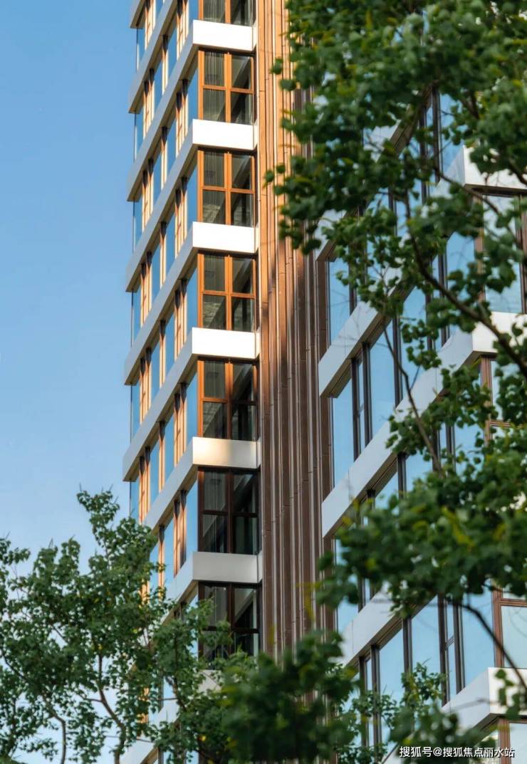 保利·天汇立面横向跃动的线条变化,融入了钢琴琴键元素,琴键横平竖直的艺术线条与屋檐的曲线相呼应,在精简利落与低调精致中实现了平衡。