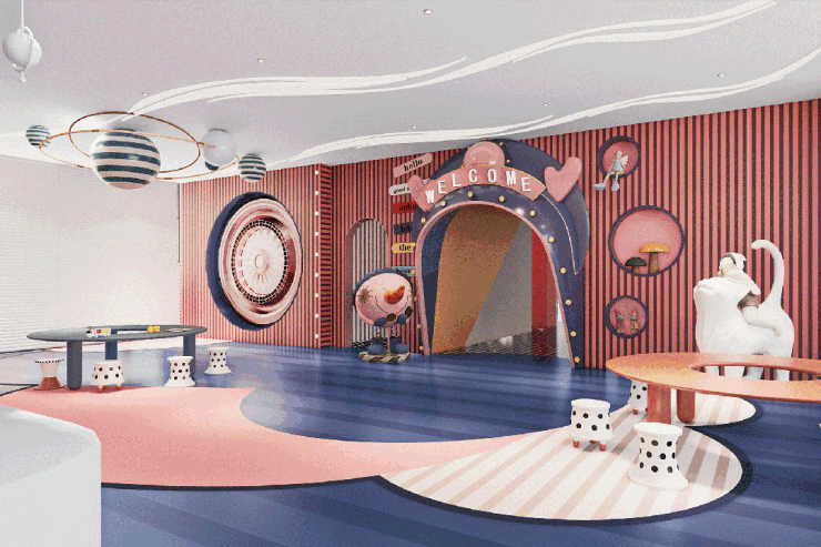 结合客户敏感点调研,为丰富业主生活,提高小区品质,以“趣活“为主题,对大堂的功能进行了延伸,在二层设计了儿童活动中心,旨在提供一个儿童安全、舒适、自在的活动中心。