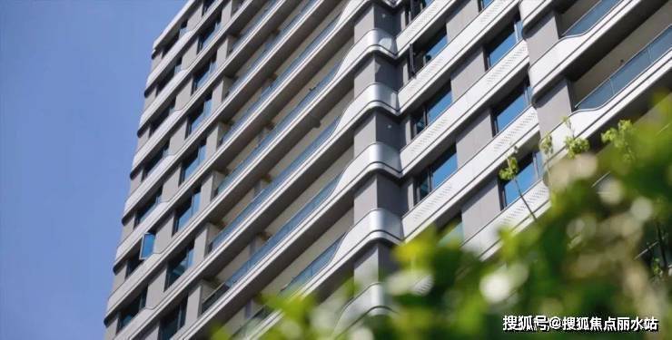 建筑底部是浅色石材和香槟金铝材搭配,上部灰色底漆加银色金属条拉开宽幅,而且是曲线造型,是一种大气的美。