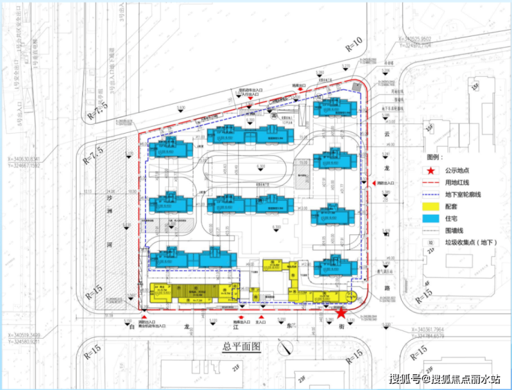 从总平面示意图来看,中堃G72共规划打造9栋7-11F低密住宅,其中3栋首层架空。地块看着不大,实际不小,公区面积足够,容积率只有1.35,非常难得。
