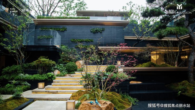 尤其这个已经实景呈现的下沉式庭院景观,通过高低差,打造多层次的垂直绿化(如爬藤植物、悬垂花卉),让景观在纵向上进一步延伸,视觉上远比站在平地看一个院子要震撼得多。