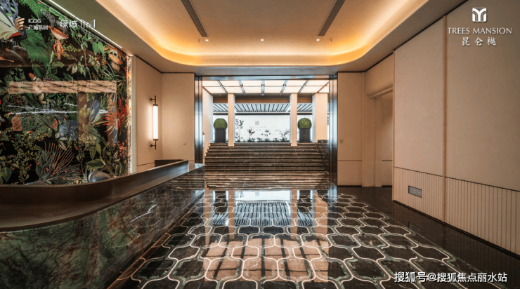 2.归家仪式感拉满,约65米宽社区门仪显尊崇礼序,地下光厅以光影艺术筑归心体验。