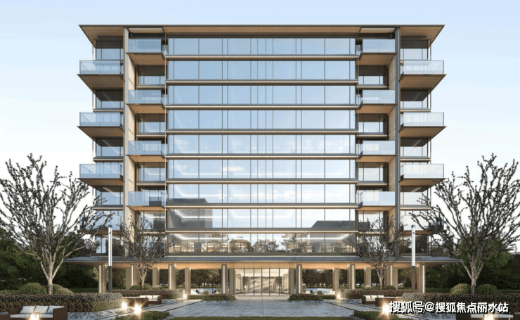 项目还是四代宅产品,效果图看,首层架空设计,外立面全落地窗,户户有挑空平台设计,整体颜值很高。