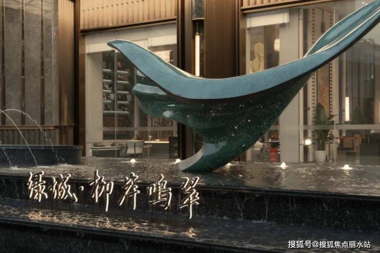 86米宽的林间画框,于此徐徐展开,门前,紫薇织就柔美的夏日天幕,细碎花影在风中呢喃;朴树撑起浓荫的穹顶,遒劲枝干刻录着时光的年轮。归燕衔翠主雕塑展翼掠水,与跃动跳泉动静相生,演绎“飞燕掠水·泉涌吉庆”的灵动诗篇。