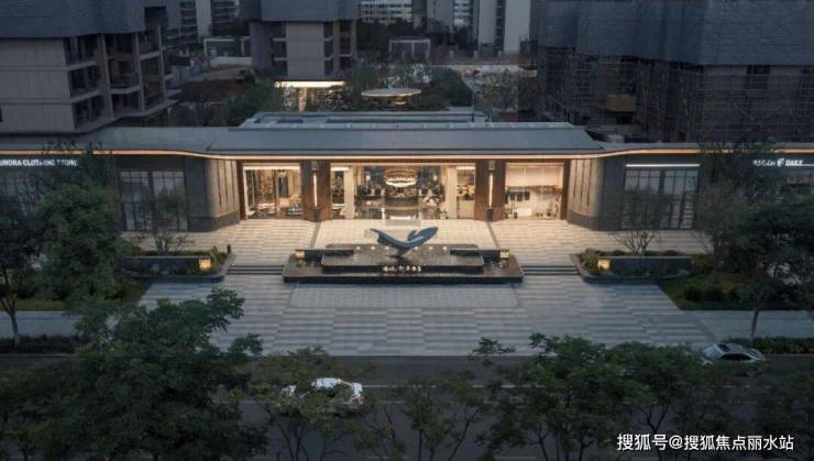 玉树鎏金亭部分发光图案采用定制符号燕子的图案,整个面层的图案肌理做了不同的层次,由下往上渐变散开的效果,成为项目超级符号。