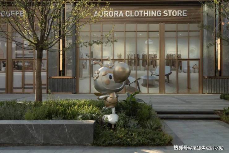 示范区入口侧,藏一方精致烟火。情景雕塑在此驻足,温润石材悉心打磨成一方坐凳,静置于浓荫之下,在此倚坐片刻,任市声如潮水般退远,独享喧嚣缝隙里被温柔放慢的光阴。