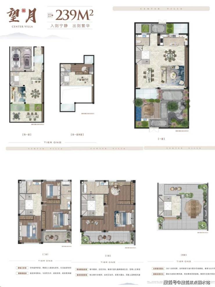 负一层层高约6米,可分层可挑高,地上首层层高约4.1米、二三层层高约3.2 米,以高度匹配居者的非凡气度;