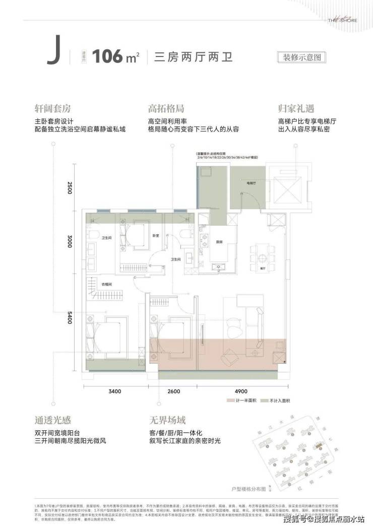 爆款106㎡三房,多处露台、阳台、飘窗等丰富拓空间,实现了得房率约94%,是区域唯一最低门槛滨江四代三房产品。