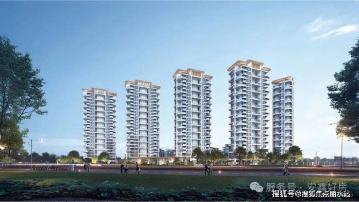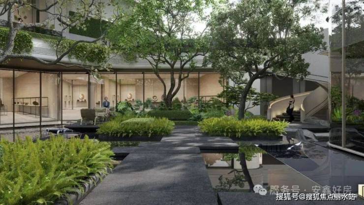 以真石漆、大面积玻璃与铝板打造公建化外立面,同时拥有约1.8的超低容积率。