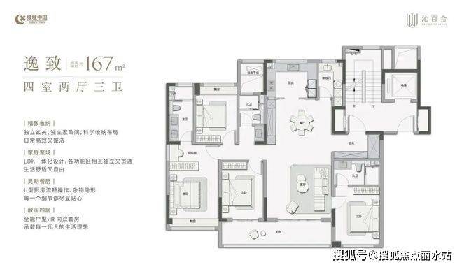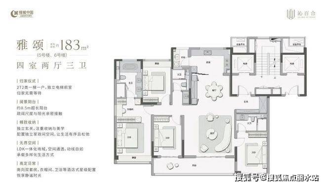 绿城·沁百合规划建设10幢9-11F低密纯洋房,打造了建面约155/167/183/230㎡四大户型,总房源量不到300套。