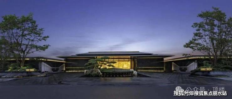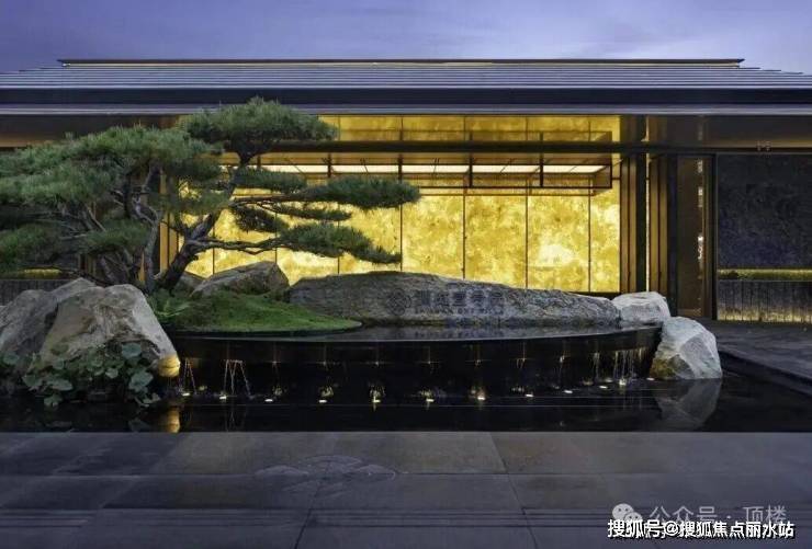 设计灵感源自传统车马院,打造出尊贵的环岛式落客前场,全冠移植的造型油松与迎宾水景静候一侧,大家望族的仪式感与排场感扑面而来。
