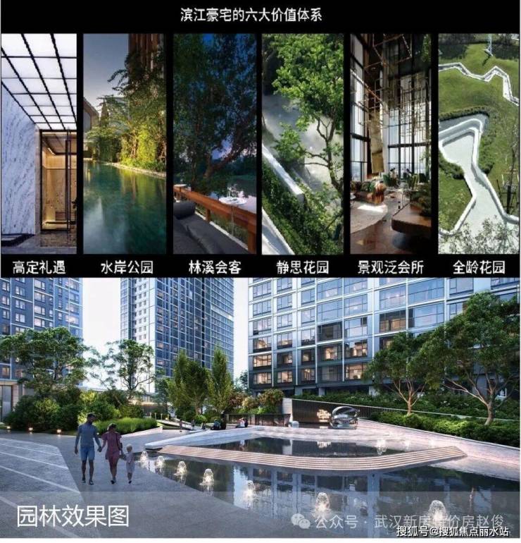 四、项目价值➢【园林配套】「一环一轴 五大灵动空间 六大社区场景」以武汉“江城”文脉为基底,集合特有地域文化脉络,提取长江、四美塘元素,将其引水入园造境,串联板块,将活动空间向社区聚拢,形成一环一轴五大灵动空间六大社区场景:高定礼遇、水岸公园、林溪会客、全龄花园、静思花园、景观泛会所
