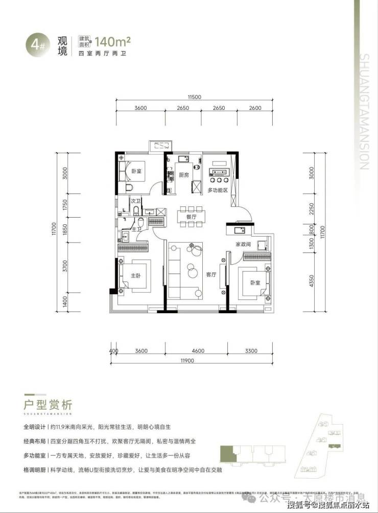 140平,四室两厅两卫,户型赏析(六层电梯洋房)