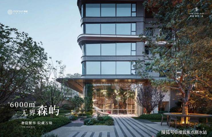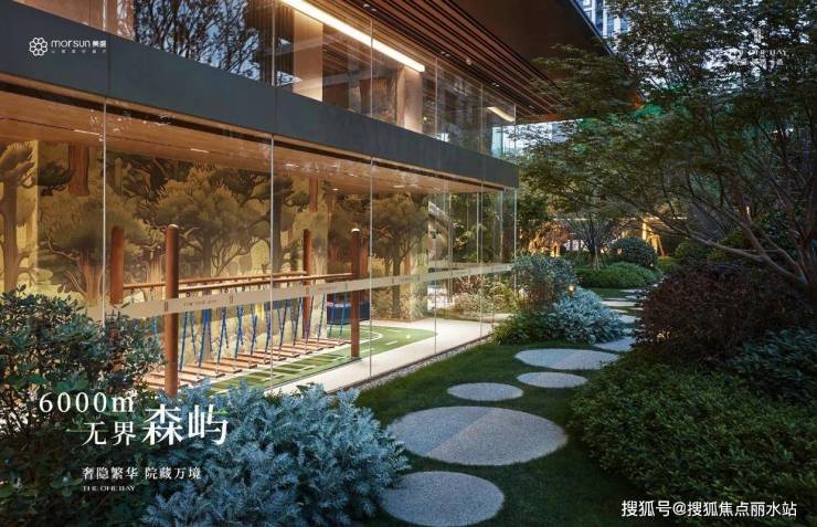社区配置的确对得起"豪宅"称号:60米星级酒店式大门营造三重归家礼序;6000㎡园林森屿绿岛以"山、川、森、屿、林"五重维度打造;3000㎡高奢会所集合红酒吧、日咖夜酒等社交场景。奥雅景观大师操刀的"无界森林艺术社区",配合超百米风雨连廊,试图在都市中复刻自然意境。