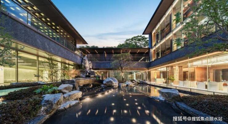 这里有大师手笔的园林景观,下沉庭院采用扬州传统的叠石技法,六米高的瀑布倾泻而下,公区大量奢石、名贵树木的运用,呈现隐贵气质。