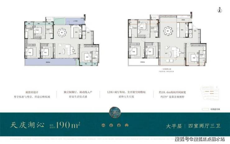 生活私密性与舒适度:创新的双动线入户设计,巧妙分离家人与访客动线;双套房设计,尤其强调主卧套间的完整性,保障了主人家与长辈的居住尊严与私密。约270°的宽幕景观视野,则将园林盛景最大化融入日常,实现窗即画卷的居住诗意。