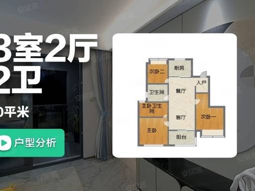90㎡三房两厅两卫:经典刚需户型,空间利用率极高,三开间朝南设计,客厅连接南向观景阳台,主卧套房配置独立卫生间与飘窗,次卧与儿童房功能分区清晰,双卫设计避免早高峰使用冲突,适合三口之家或刚需首置人群,总价约 420 万起,轻松入主浦东核心区。