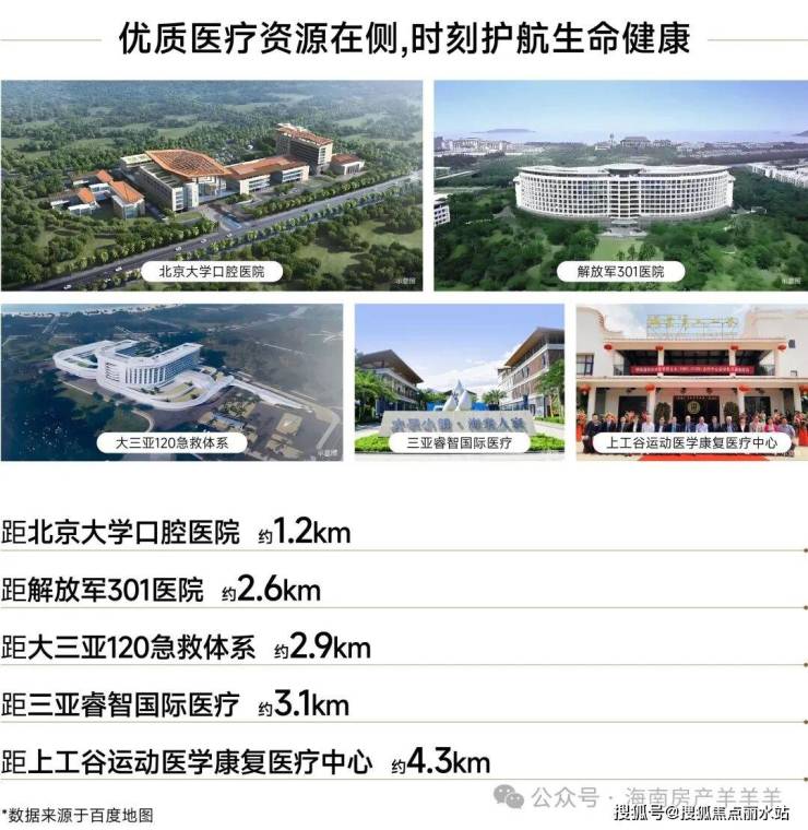 解放军301总院海南分院、北大口腔医院、赫尔曼运动康复医院、上工谷运动医疗康复中心等,业主享全维度医疗资源环伺,为健康筑起安心屏障。