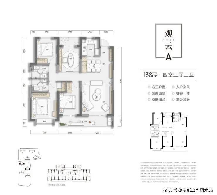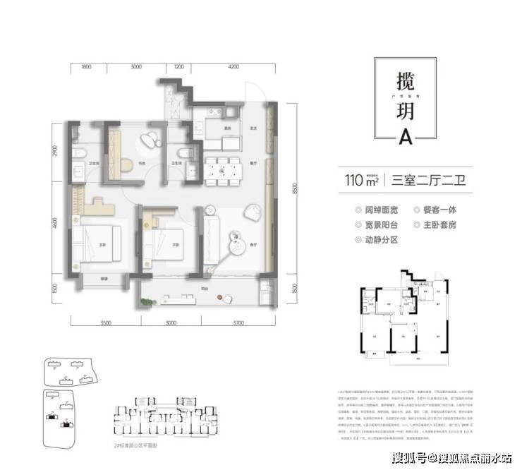 方正户型全明设计,南北通透,三开间朝南,餐客一体,双联阳台,南向主卧套房彰呈尊贵