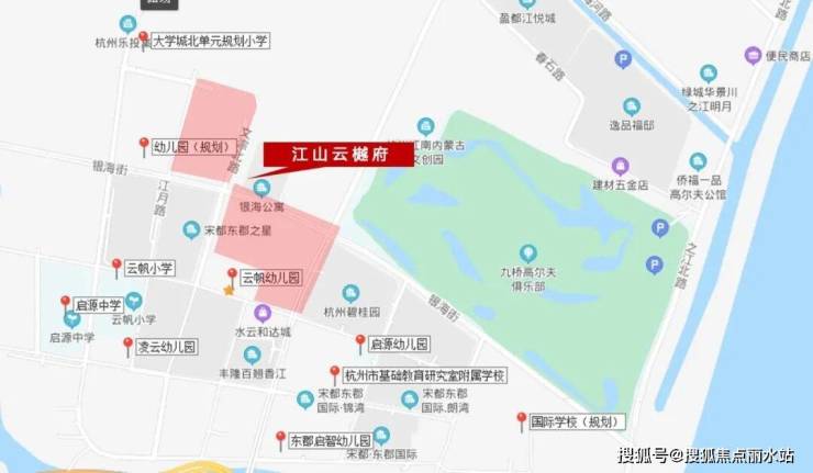 教育资源方面,江山云樾府门口就是云帆幼儿园,直线约400米范围内有云帆小学、杭州市基础教育研究室附属学校、启源中学等,真正实现了“12年全步行教育链”。